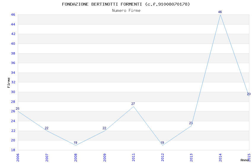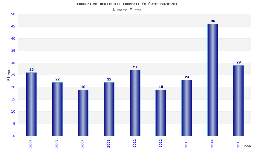| Anno | Firme | Importi | Media | Naz. | Reg. | Prov. | Comu. |