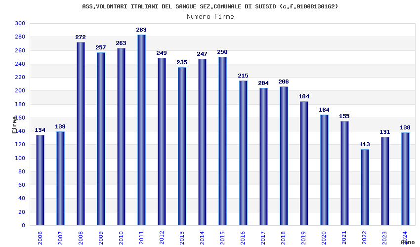 | Anno | Firme | Importi | Media | Naz. | Reg. | Prov. | Comu. |