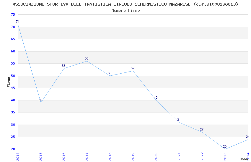 | 2014 | 71 | 2.388,46 | 33,64 | 19.489 | 1.146 | 91 | 12 |
