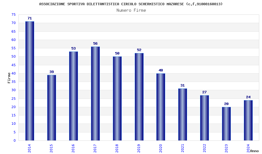 | Anno | Firme | Importi | Media | Naz. | Reg. | Prov. | Comu. |