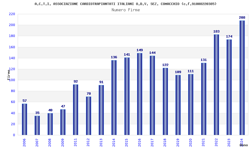 | 2024 | 208 | 3.183,21 | 15,30 | 16.517 | 1.419 | 83 | 3 |