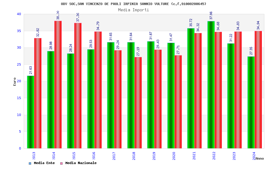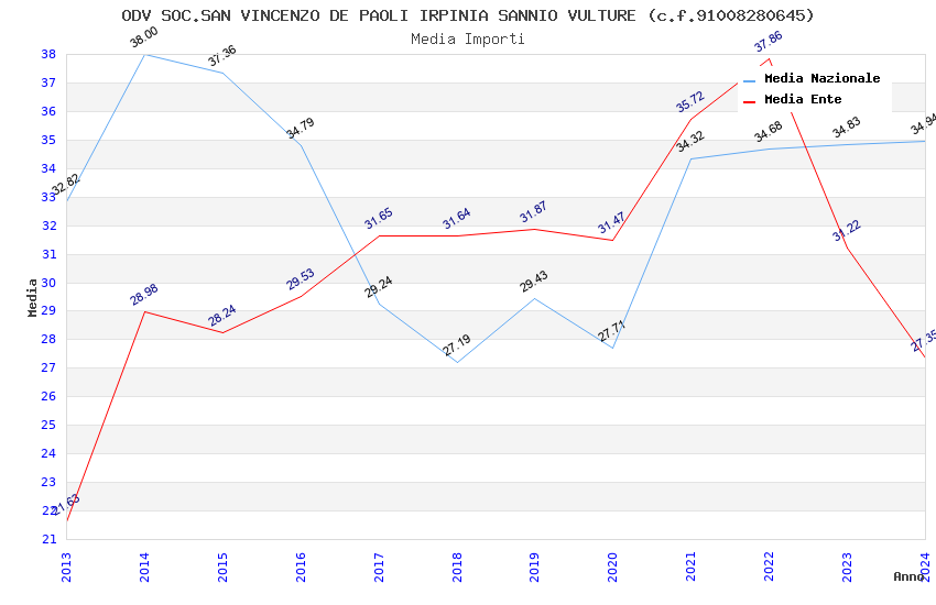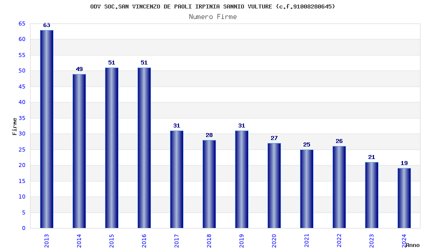 | Anno | Firme | Importi | Media | Naz. | Reg. | Prov. | Comu. |