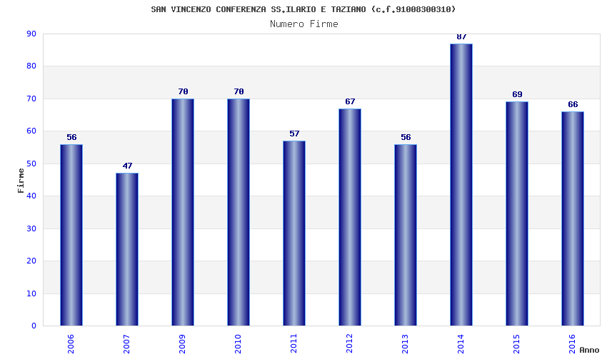 | Anno | Firme | Importi | Media | Naz. | Reg. | Prov. | Comu. |