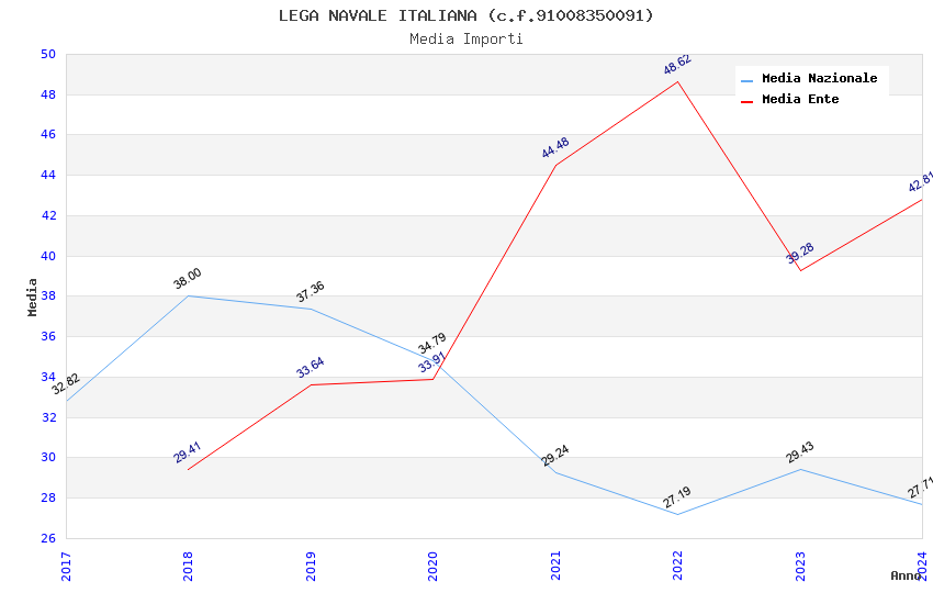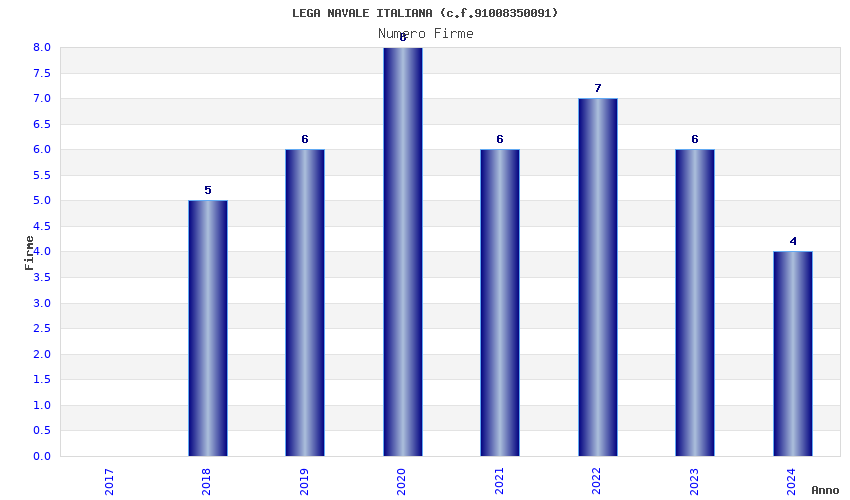 | Anno | Firme | Importi | Media | Naz. | Reg. | Prov. | Comu. |
