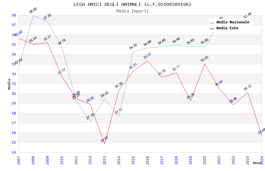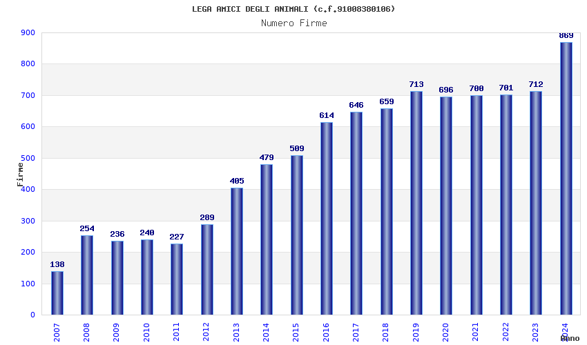 | Anno | Firme | Importi | Media | Naz. | Reg. | Prov. | Comu. |