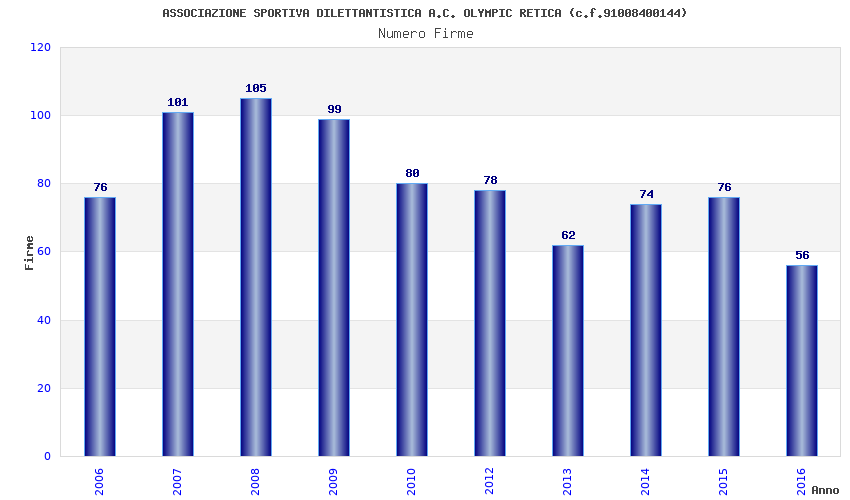| 2015 | 76 | 2.284,17 | 30,05 | 20.099 | 4.641 | 98 | 1 |