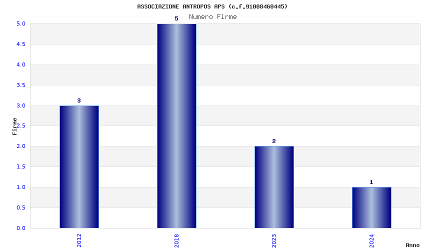 | Anno | Firme | Importi | Media | Naz. | Reg. | Prov. | Comu. |