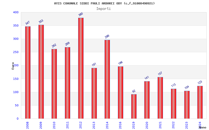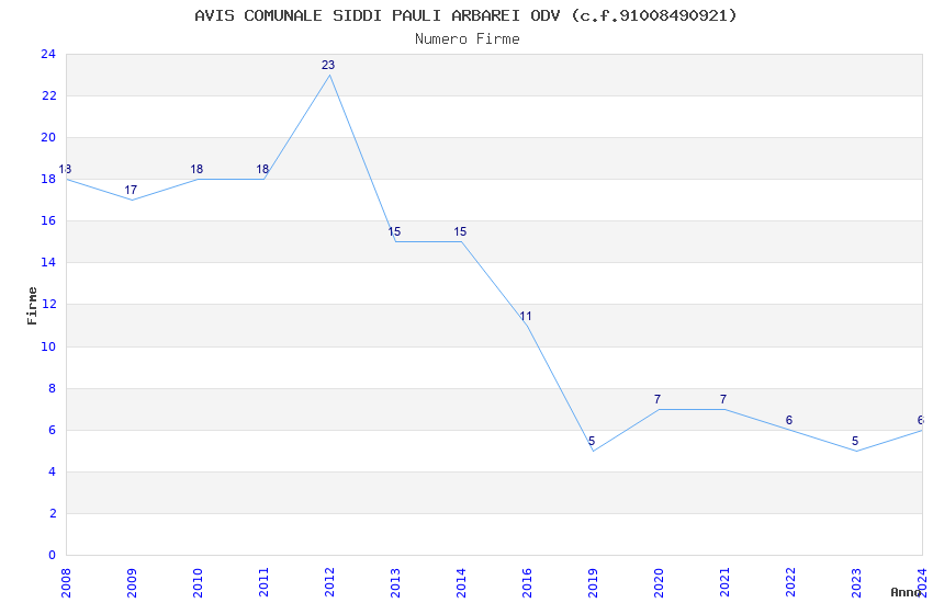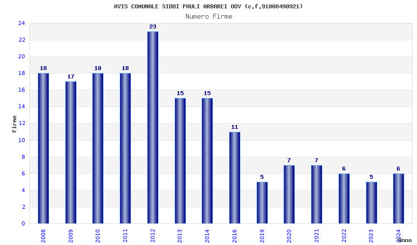| Anno | Firme | Importi | Media | Naz. | Reg. | Prov. | Comu. |