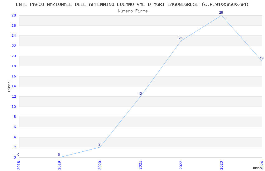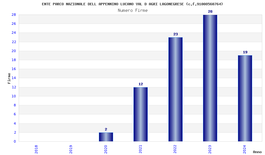 | Anno | Firme | Importi | Media | Naz. | Reg. | Prov. | Comu. |