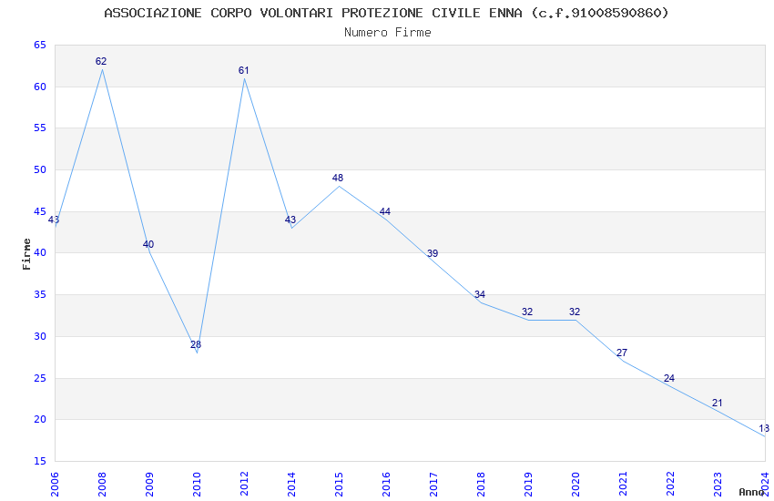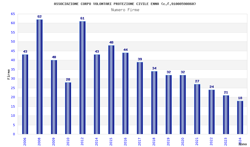 | Anno | Firme | Importi | Media | Naz. | Reg. | Prov. | Comu. |