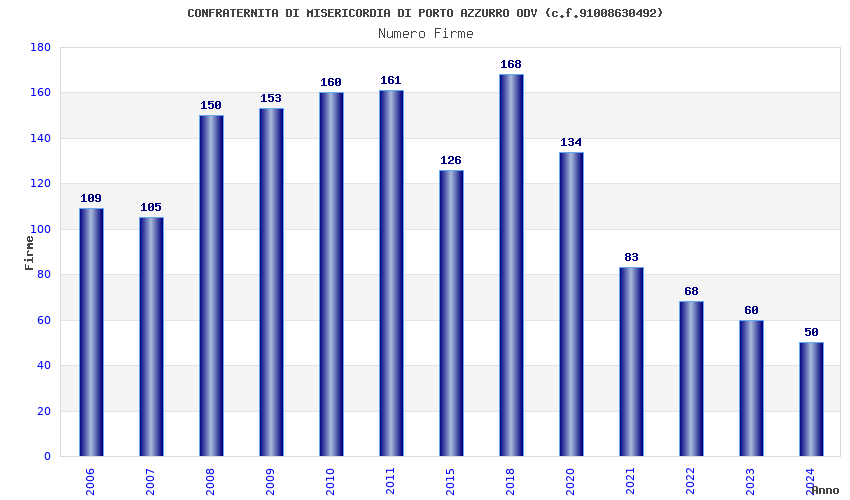 | Anno | Firme | Importi | Media | Naz. | Reg. | Prov. | Comu. |