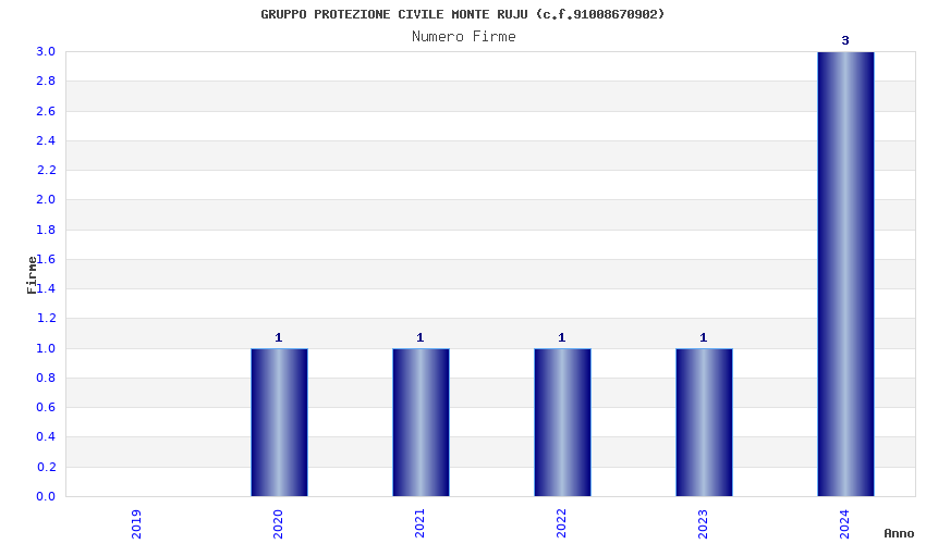 | Anno | Firme | Importi | Media | Naz. | Reg. | Prov. | Comu. |