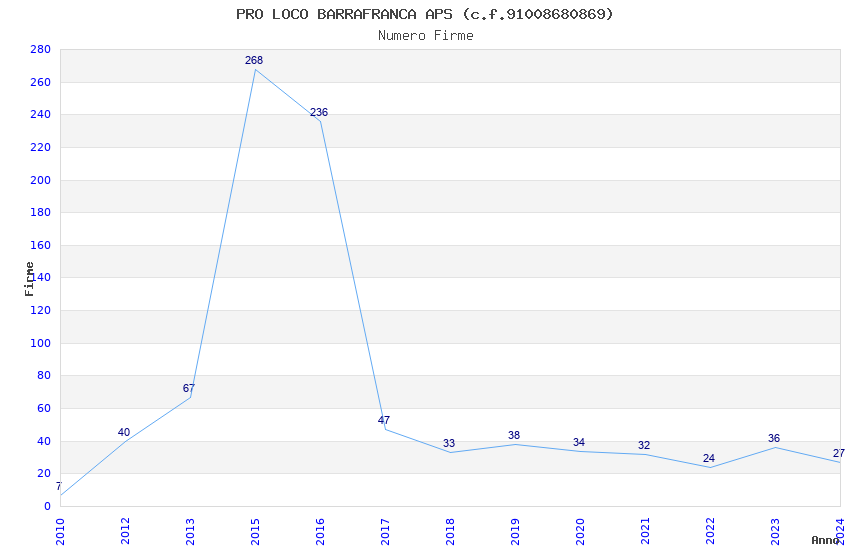 | 2017 | 47 | 805,53 | 17,14 | 37.676 | 2.175 | 104 | 6 |