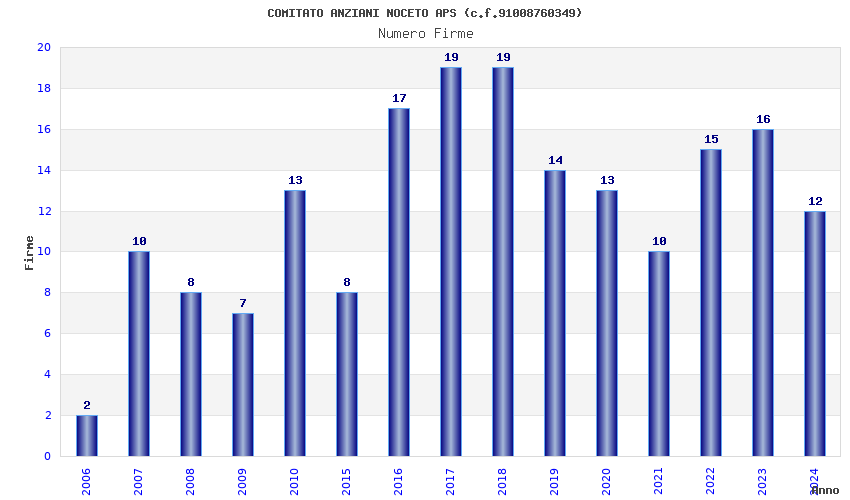 | Anno | Firme | Importi | Media | Naz. | Reg. | Prov. | Comu. |