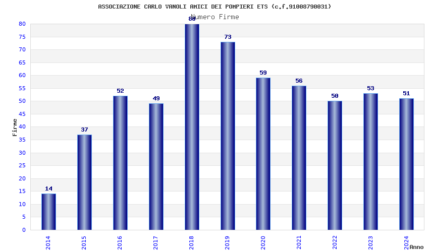 | Anno | Firme | Importi | Media | Naz. | Reg. | Prov. | Comu. |