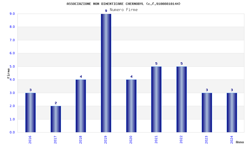 | Anno | Firme | Importi | Media | Naz. | Reg. | Prov. | Comu. |