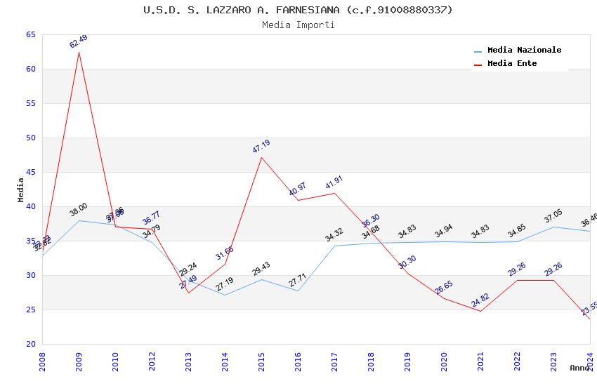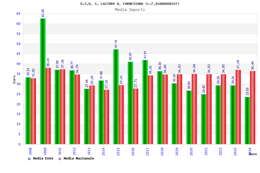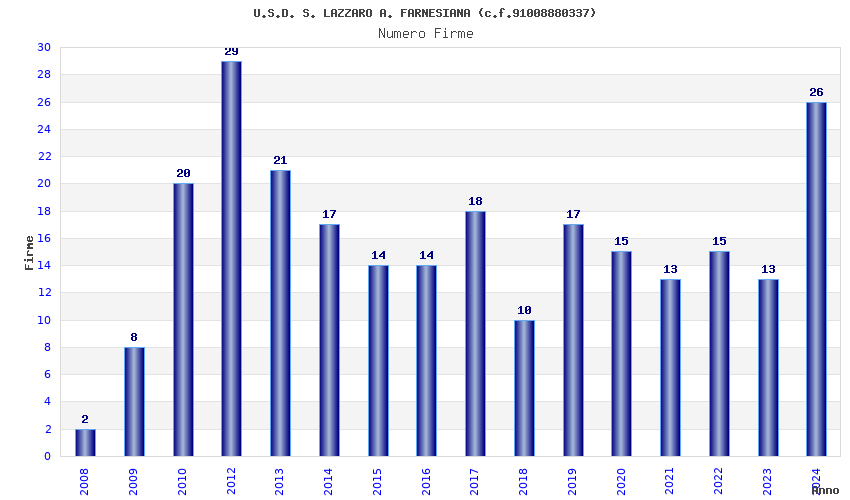| Anno | Firme | Importi | Media | Naz. | Reg. | Prov. | Comu. |