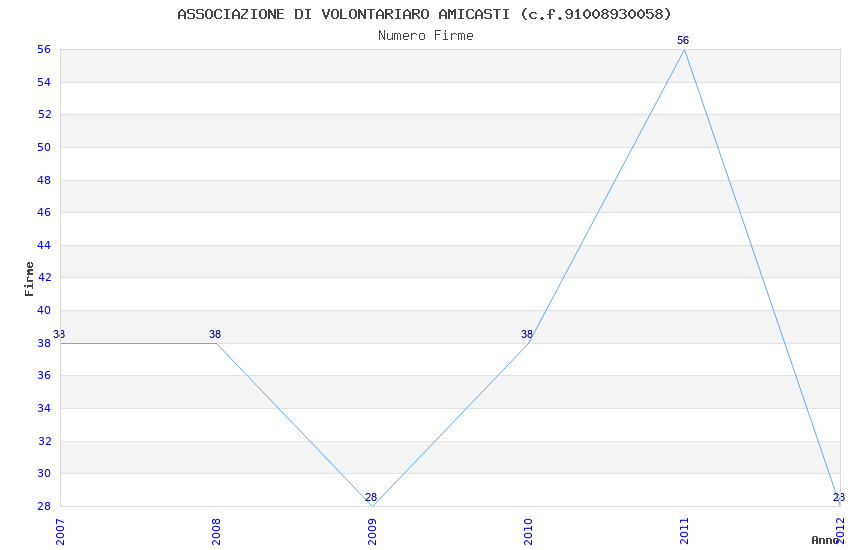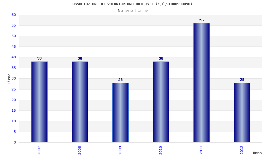 | Anno | Firme | Importi | Media | Naz. | Reg. | Prov. | Comu. |