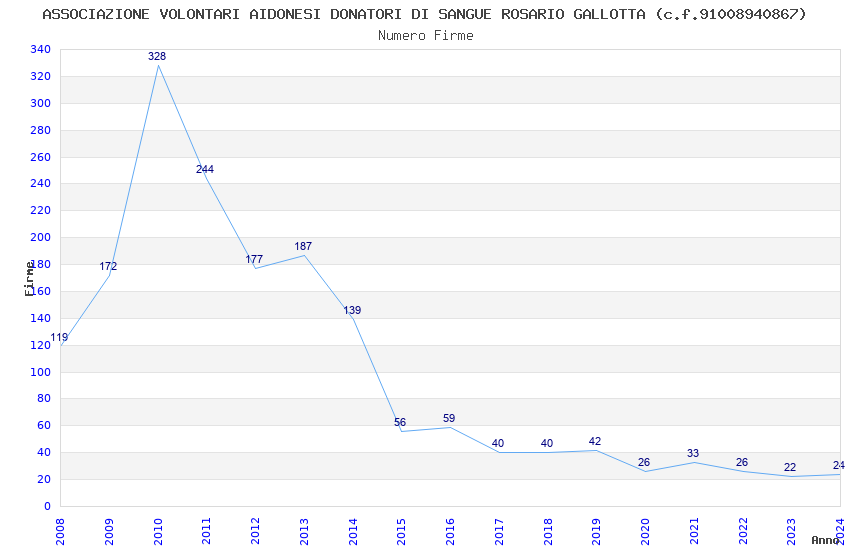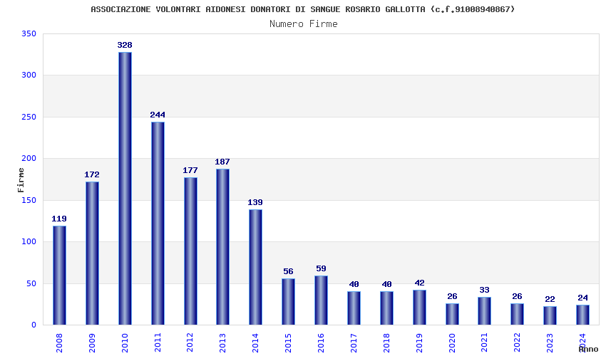 | Anno | Firme | Importi | Media | Naz. | Reg. | Prov. | Comu. |