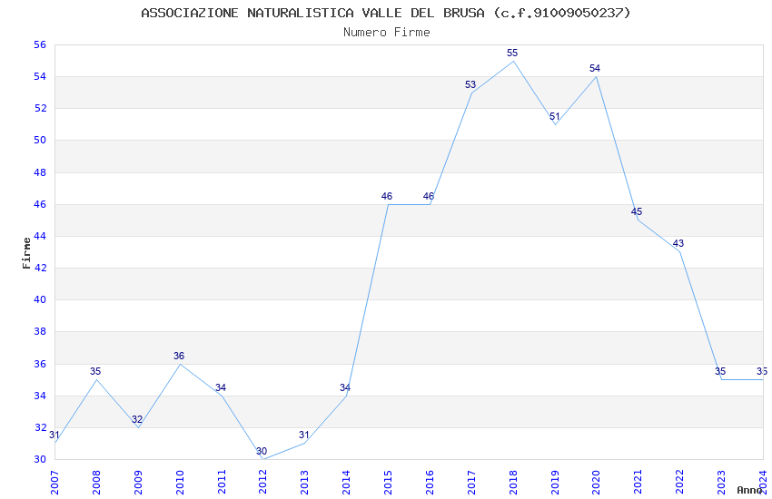 | 2018 | 55 | 2.021,26 | 36,75 | 23.517 | 2.207 | 430 | 8 |