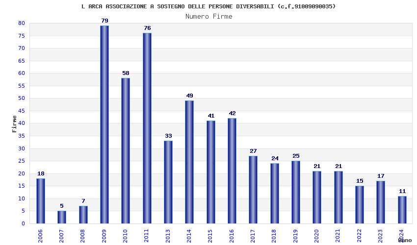 | Anno | Firme | Importi | Media | Naz. | Reg. | Prov. | Comu. |