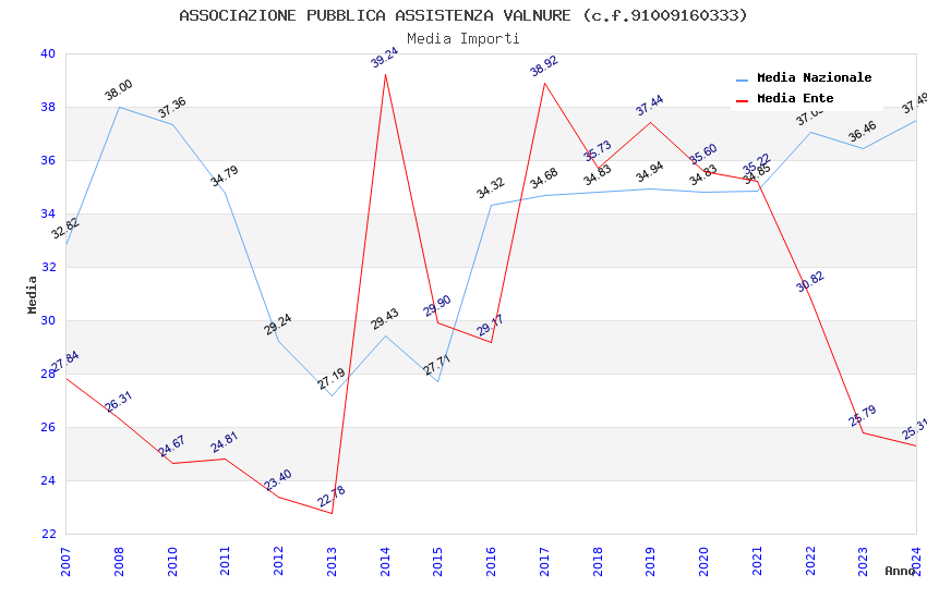 | Anno | Firme | Importi | Media | Naz. | Reg. | Prov. | Comu. |