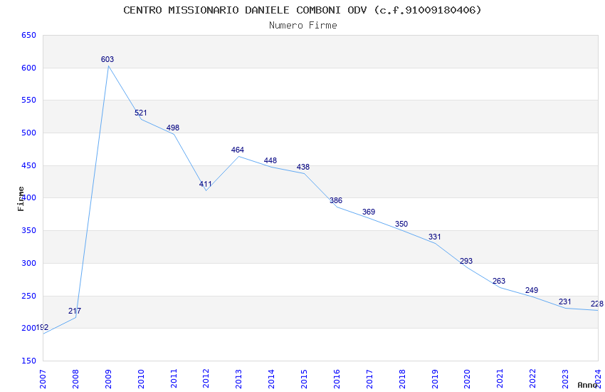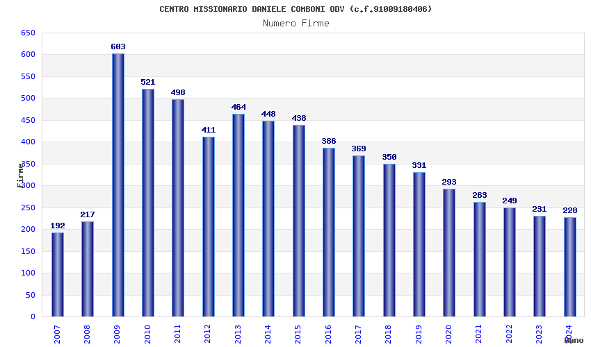 | Anno | Firme | Importi | Media | Naz. | Reg. | Prov. | Comu. |