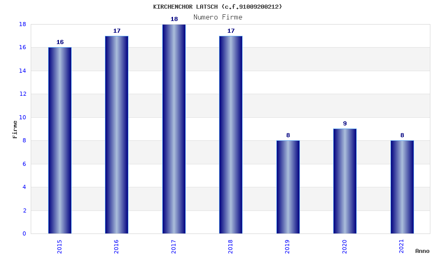| Anno | Firme | Importi | Media | Naz. | Reg. | Prov. | Comu. |