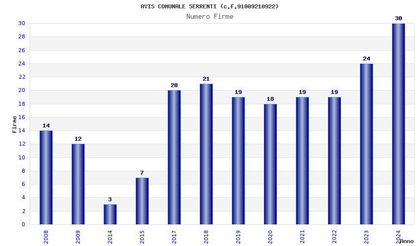 Anno Firme Importi Media Naz. Reg. Prov. Comu.