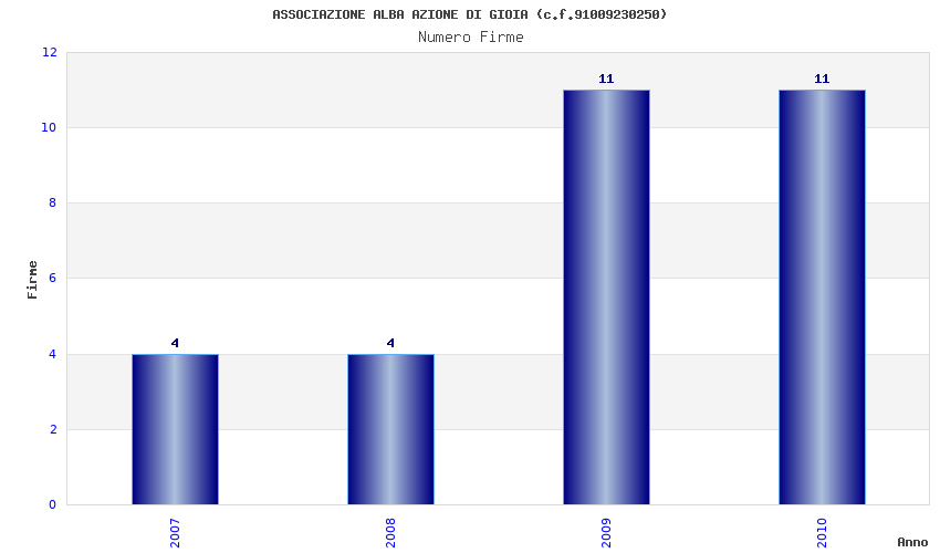 | Anno | Firme | Importi | Media | Naz. | Reg. | Prov. | Comu. |