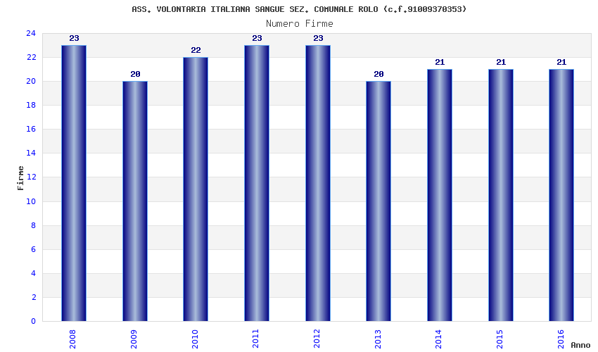 | Anno | Firme | Importi | Media | Naz. | Reg. | Prov. | Comu. |