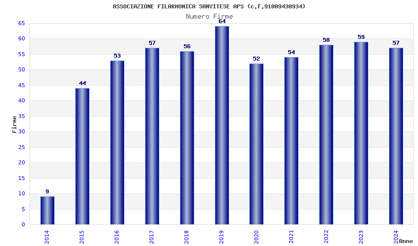 | Anno | Firme | Importi | Media | Naz. | Reg. | Prov. | Comu. |