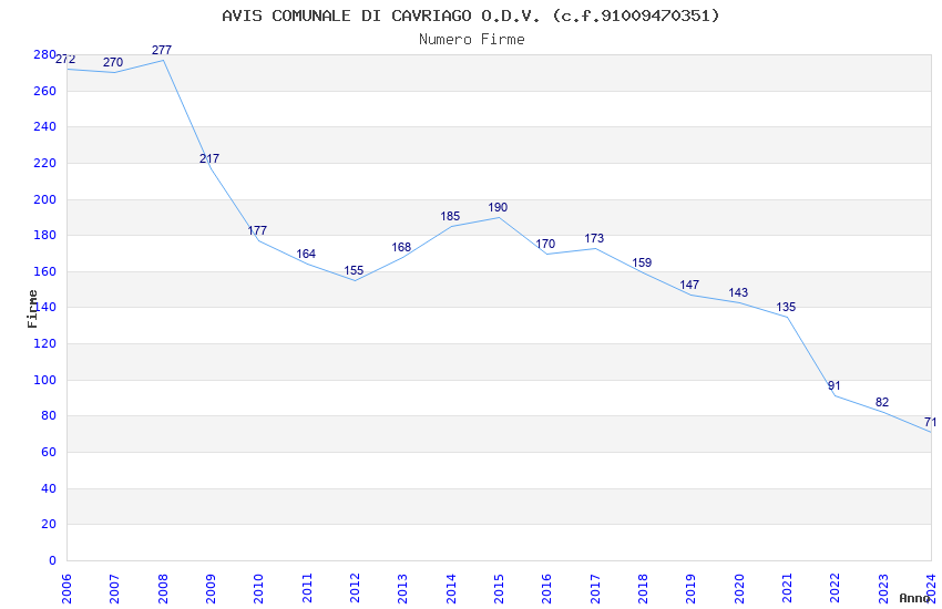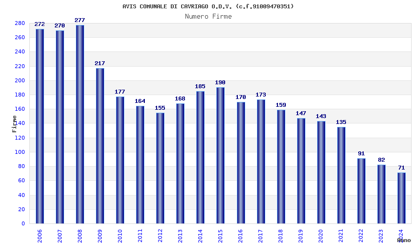| Anno | Firme | Importi | Media | Naz. | Reg. | Prov. | Comu. |