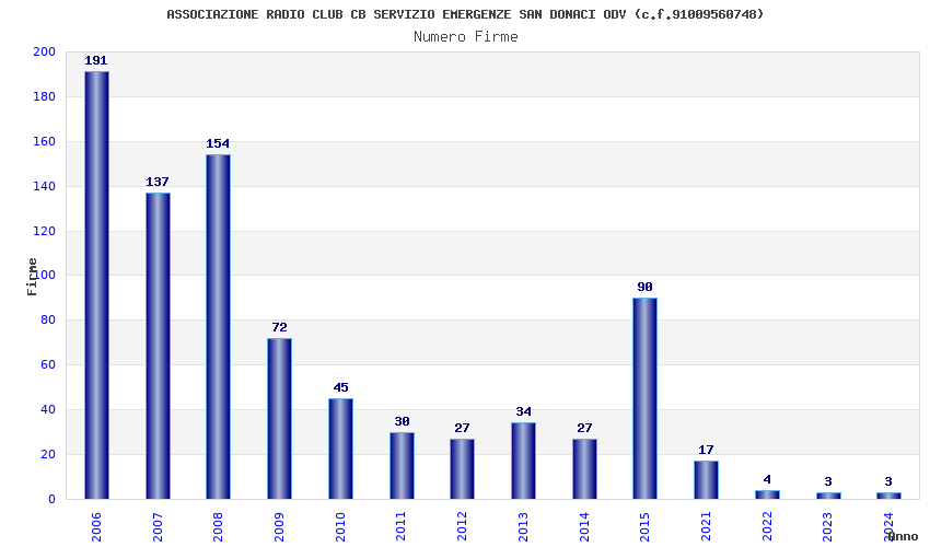 | 2006 | 191 | 4.125,21 | 21,60 | 9.547 | 382 | 30 | 1 |