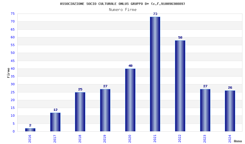 | Anno | Firme | Importi | Media | Naz. | Reg. | Prov. | Comu. |