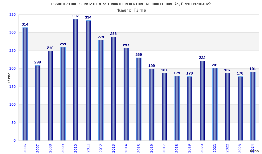 Anno Firme Importi Media Naz. Reg. Prov. Comu.