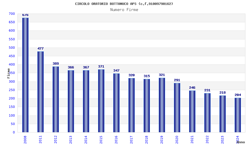 | Anno | Firme | Importi | Media | Naz. | Reg. | Prov. | Comu. |