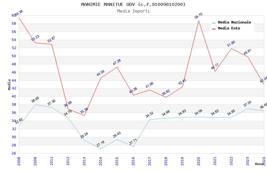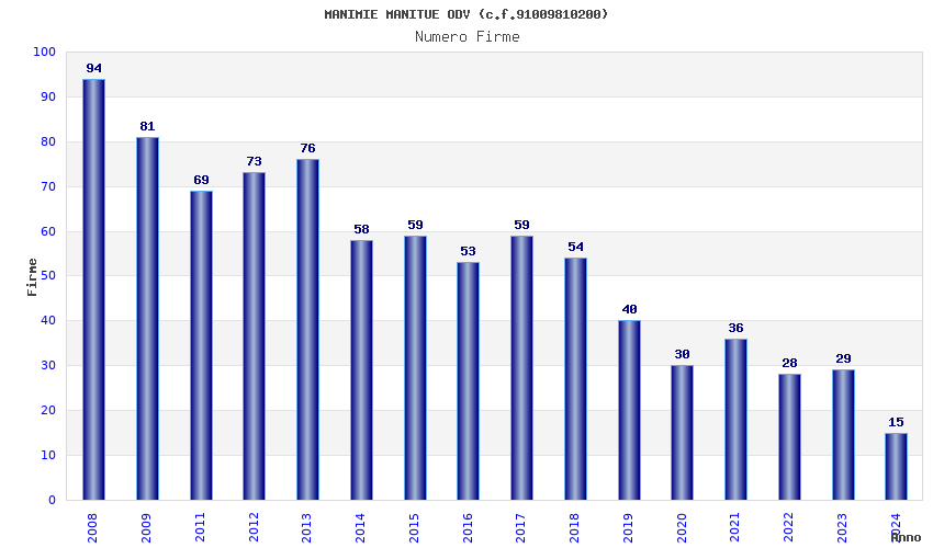 | Anno | Firme | Importi | Media | Naz. | Reg. | Prov. | Comu. |