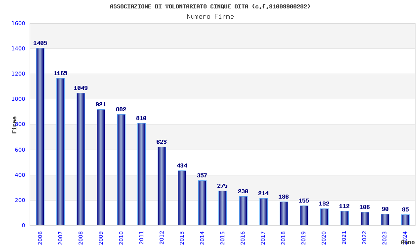 | Anno | Firme | Importi | Media | Naz. | Reg. | Prov. | Comu. |