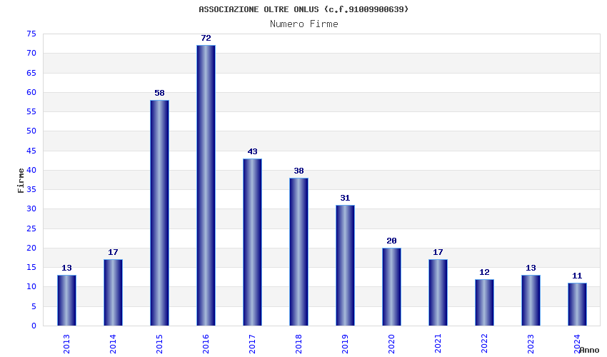 | Anno | Firme | Importi | Media | Naz. | Reg. | Prov. | Comu. |