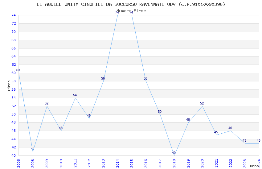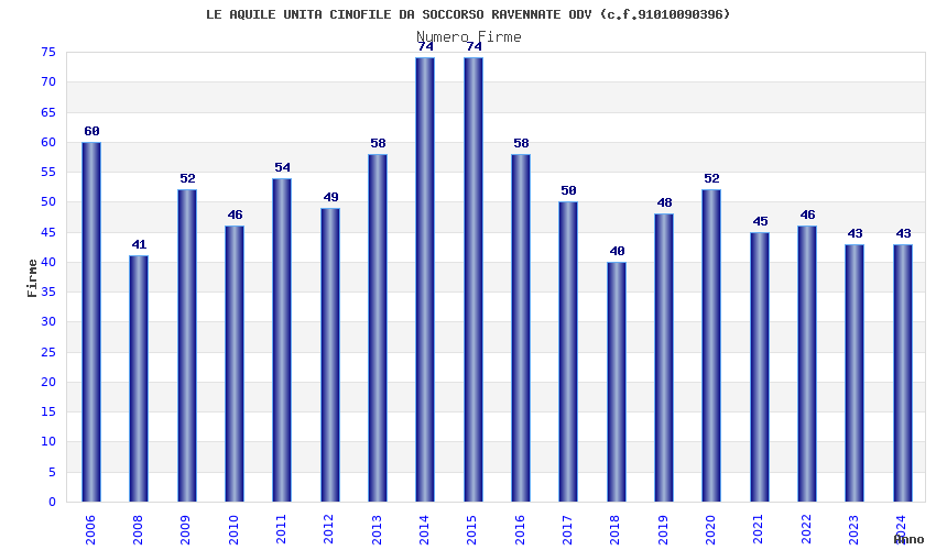 | 2015 | 74 | 2.390,67 | 32,31 | 19.499 | 1.716 | 134 | 15 |