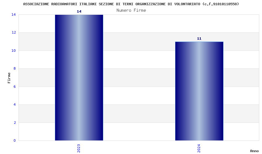 | Anno | Firme | Importi | Media | Naz. | Reg. | Prov. | Comu. |