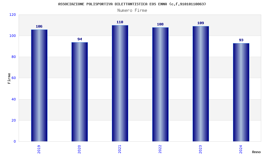 | Anno | Firme | Importi | Media | Naz. | Reg. | Prov. | Comu. |
