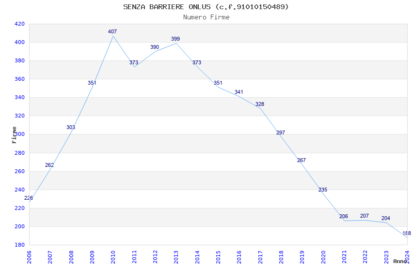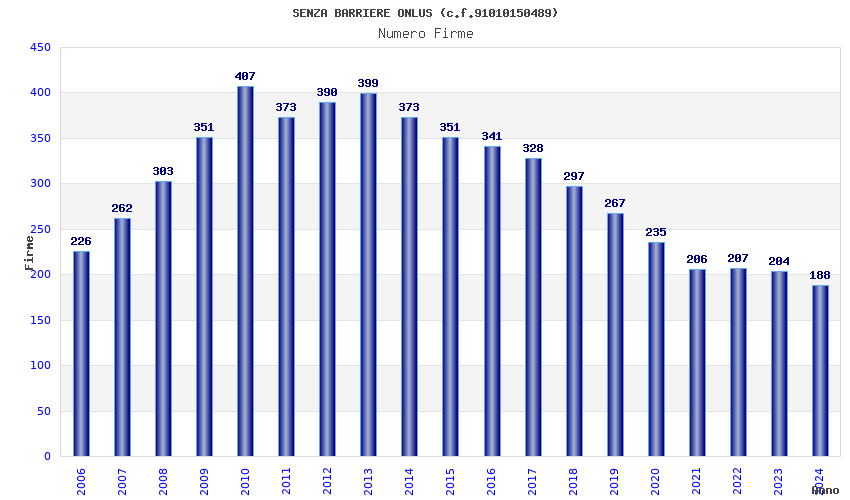 | Anno | Firme | Importi | Media | Naz. | Reg. | Prov. | Comu. |