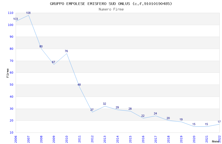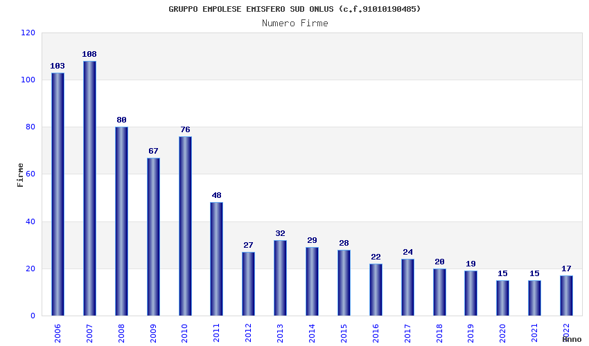 | 2006 | 103 | 2.167,54 | 21,04 | 14.442 | 958 | 285 | 10 |