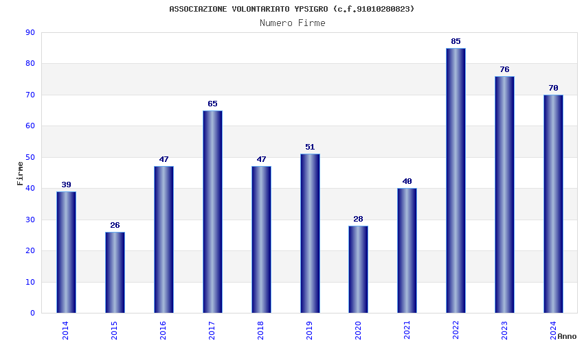 | Anno | Firme | Importi | Media | Naz. | Reg. | Prov. | Comu. |