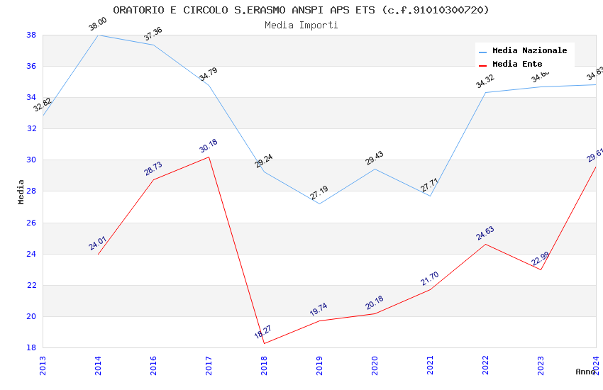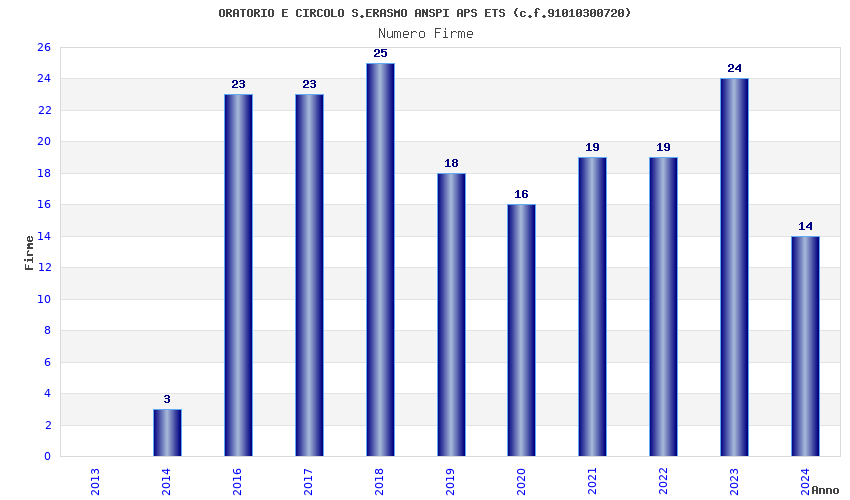 | Anno | Firme | Importi | Media | Naz. | Reg. | Prov. | Comu. |