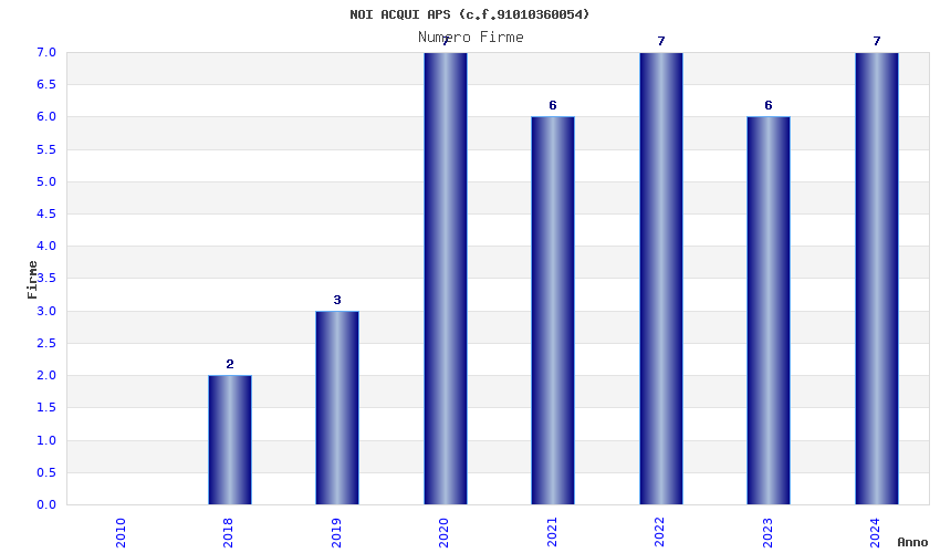 | Anno | Firme | Importi | Media | Naz. | Reg. | Prov. | Comu. |