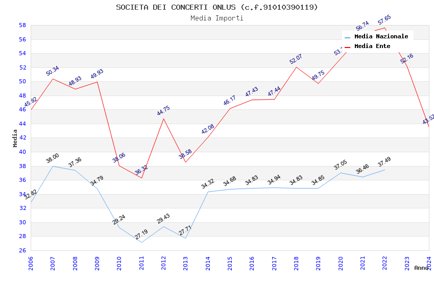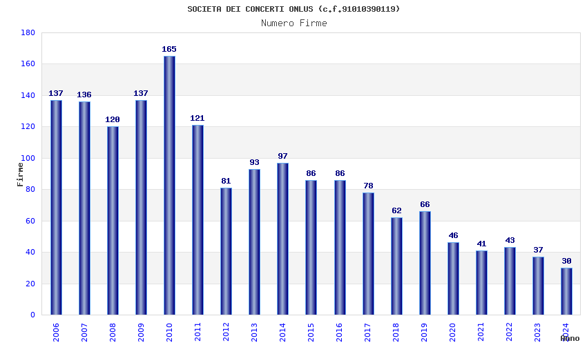 | Anno | Firme | Importi | Media | Naz. | Reg. | Prov. | Comu. |