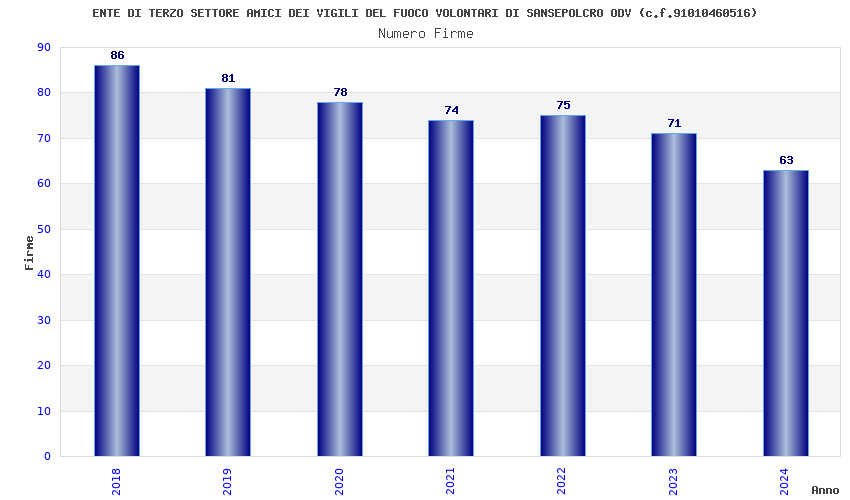 | Anno | Firme | Importi | Media | Naz. | Reg. | Prov. | Comu. |